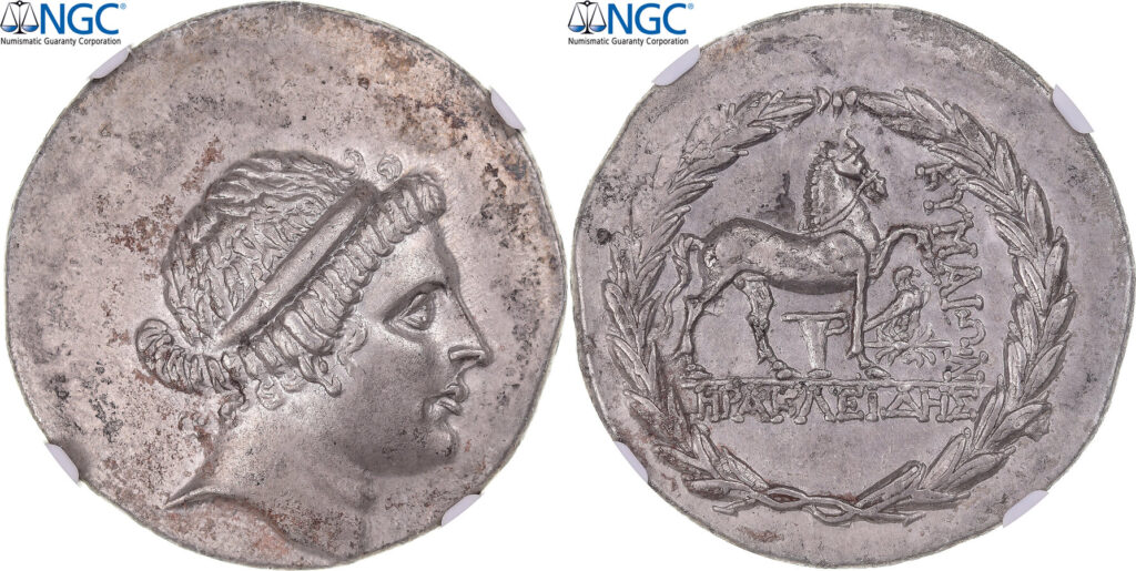 Graded NGC AU Strike: 5/5 Surface: 3/5. Herakleides, magistrate (Oakley 1982, Herakleides).